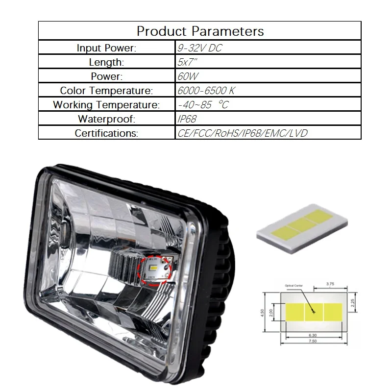 astounding CREK 4X6" 5X7" 5" 60W H7 Truck ATV SUV LED Headlight Wrangler LED Head Light For ATV SUV 4WD 4x4 Tr